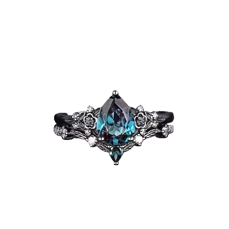 2Pcs Gothic Black Gold Pear Shaped Alexander Engagement Ring Set